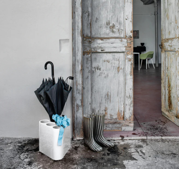 Met zes waterdichte parapluschachten overtuigt de Magis Poppins paraplubak in drie kleuren en met zijn duidelijke speelse vormen.